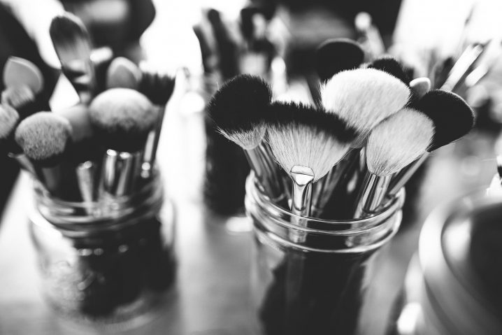 Black & White Photo Of Various Makeup Brush Sets